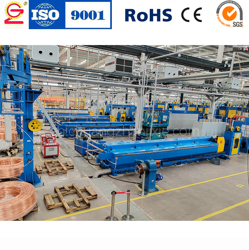 Линия грубого волочения меди предназначена для получения проволоки из катанки путем протягивания через круглое или фасонное отверстие в фильере, сечение которого меньше сечения заготовки. Линия оснащена отжигом на проход.
