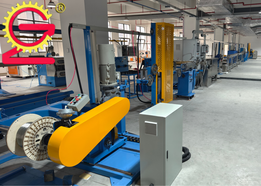 Нами было завершено изготовление оборудования и проведены пусконаладочные и приемосдаточные испытания на территории нашего предприятия совместно с заказчиком, экструзионной линии с диаметром шнека 50 мм для наложения оболочки из фторопласта на саморегулирующиеся нагревательные кабели, а также линии перемотки.